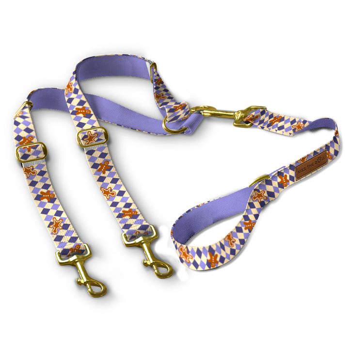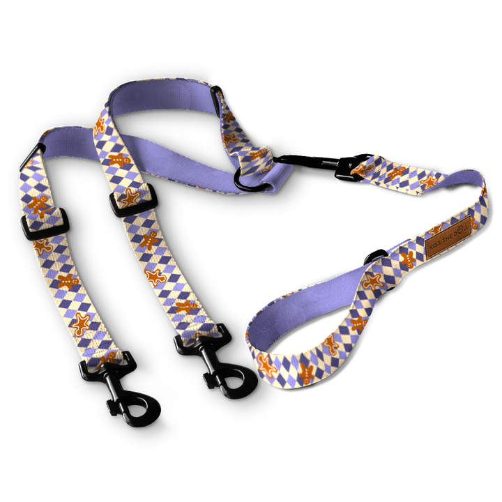 Smycz dla wielu psów "Gingerbread Grid" - czarne okucia