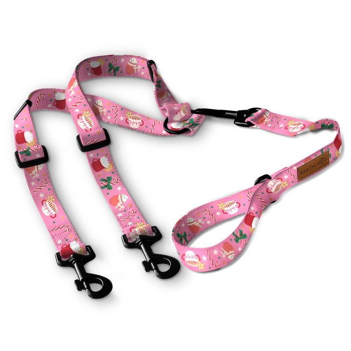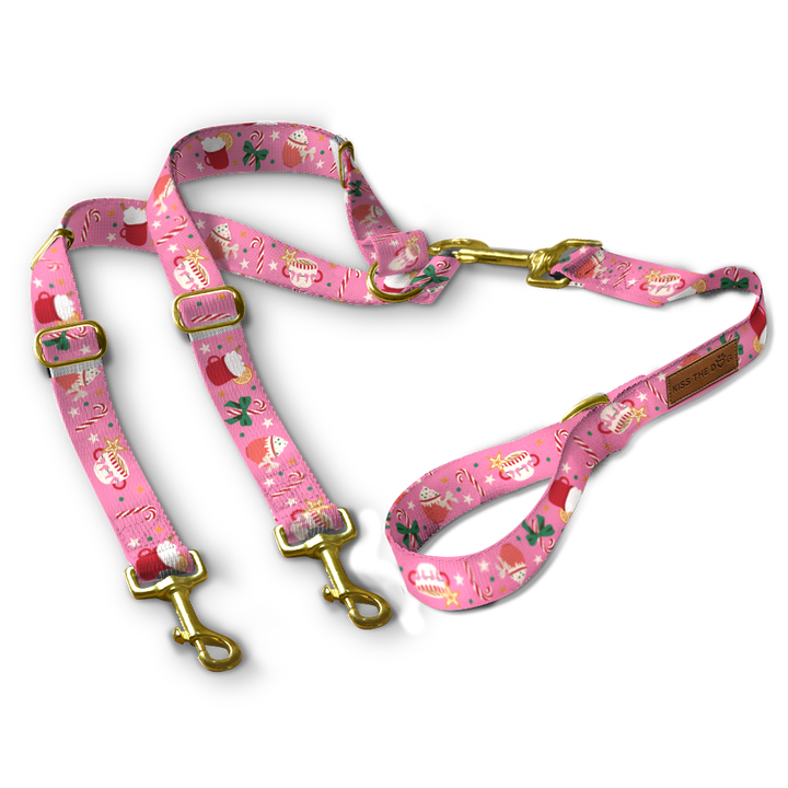 Smycz dla wielu psów "Holiday Candy" - złote okucia